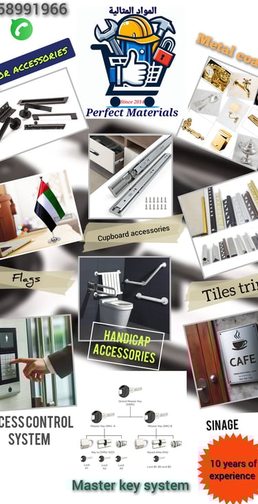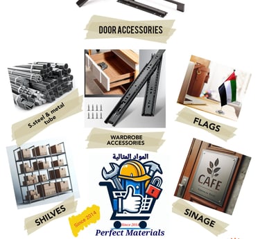Perfect Materials is a UAE-based trading company specializing in building materials, door accessories, wardrobe accessories, and metal plating since 2014. We offer free delivery on all purchases.